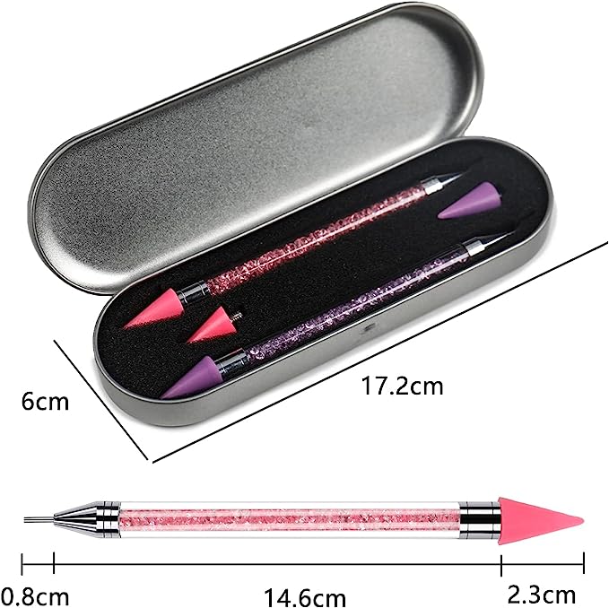 One Diamond Painting Dotting Pen,Two Extra Replaceable Wax Heads And A Metal Box. The rhinestone picker suitable for any nail jewelry, rhinestones, sequins, beads, etc. It is a good partner to assist you in nail art, easy to use, very friendly to novices and nail lovers, and also suitable for professional nail artists.